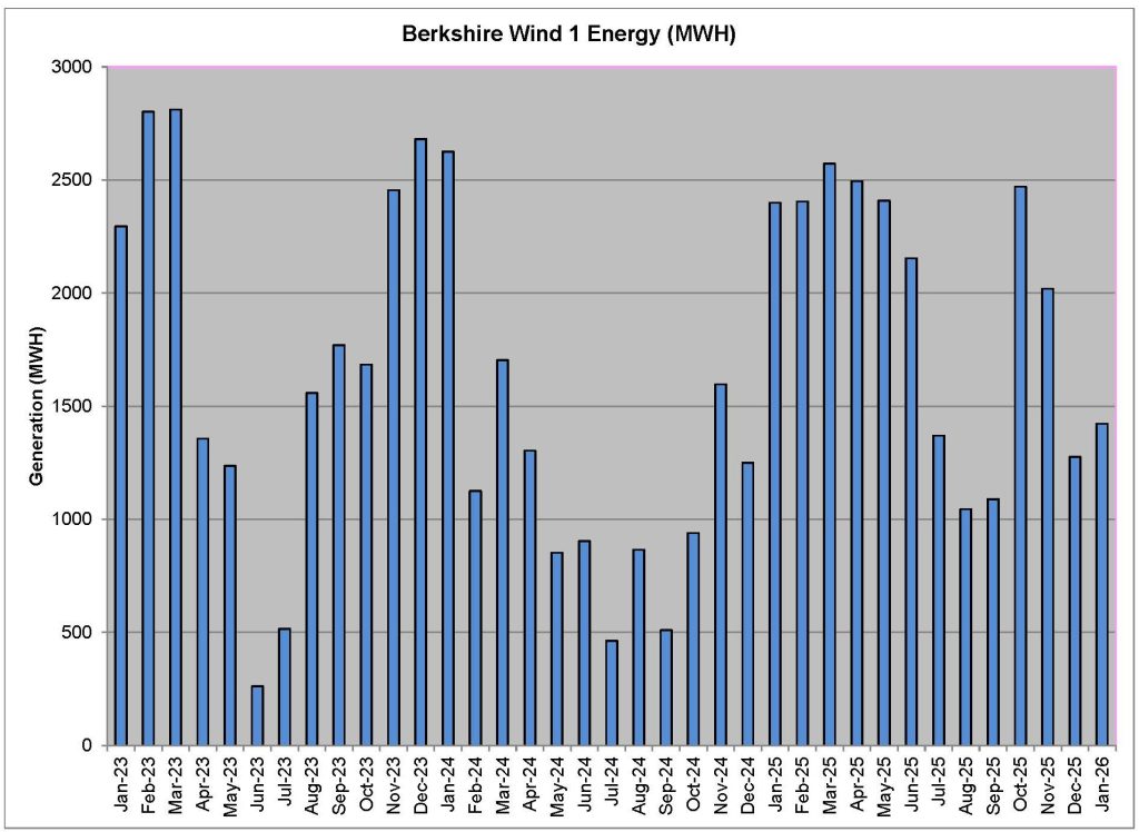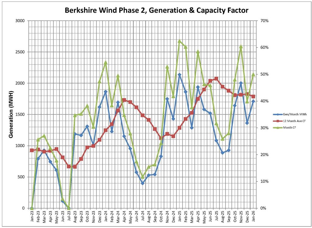 For 2026 operating year, below is the monthly generation data for the project. As of January 2026, the Berkshire Wind Phase 2 project completed 76 months of operation.